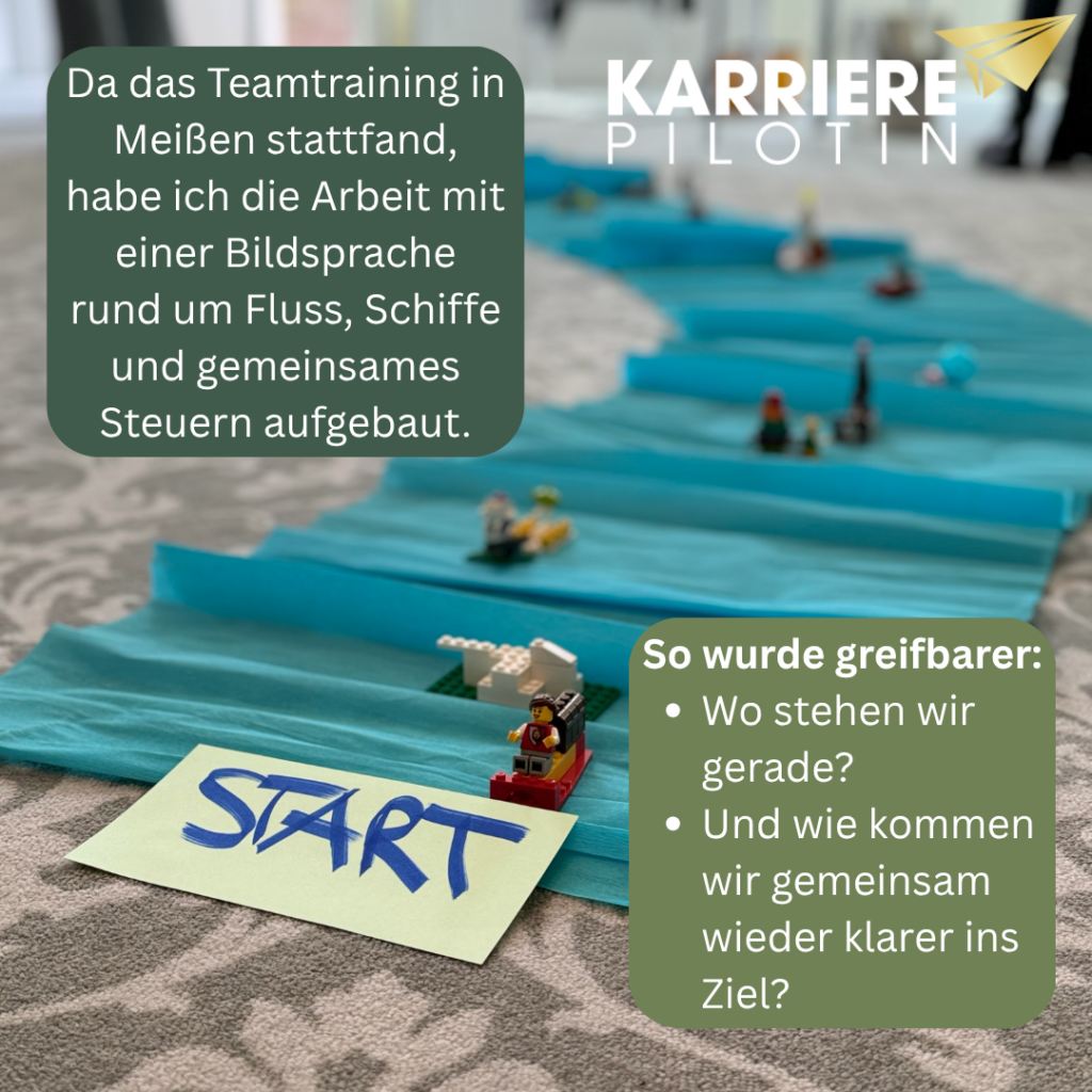 Gerade deshalb beginnt gute Teamentwicklung im Unternehmen für mich in solchen Phasen nicht mit zusätzlichem Tempo, sondern mit einem Schritt zurück. Es braucht einen Moment, in dem das Team wieder sichtbar machen kann, wo es gerade steht, was bereits trägt und was für die weitere Zusammenarbeit gebraucht wird. In Meißen habe ich dafür mit einer Bildsprache rund um Fluss, Schiffe und gemeinsames Steuern gearbeitet. Solche Metaphern sind für mich kein hübsches Beiwerk, sondern oft eine wirksame Möglichkeit, komplexe Teamdynamik verständlicher zu machen. Was im Arbeitsalltag diffus geworden ist, wird dadurch wieder greifbarer.